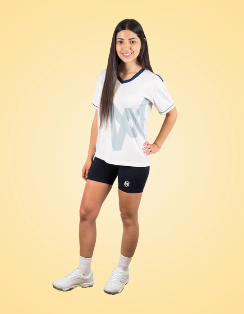 Calza mujer, de lycra algodón, con logo estampado. Uso de Play Group a IV medio para Deportes. Desde talla 4 a XL.