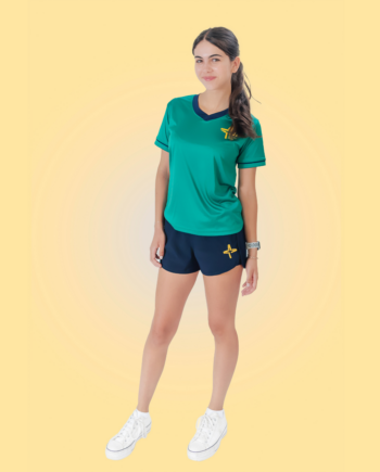 Polera unisex, de gamuza, manga corta, cuello polo. Uso exclusivo en Educación Física.