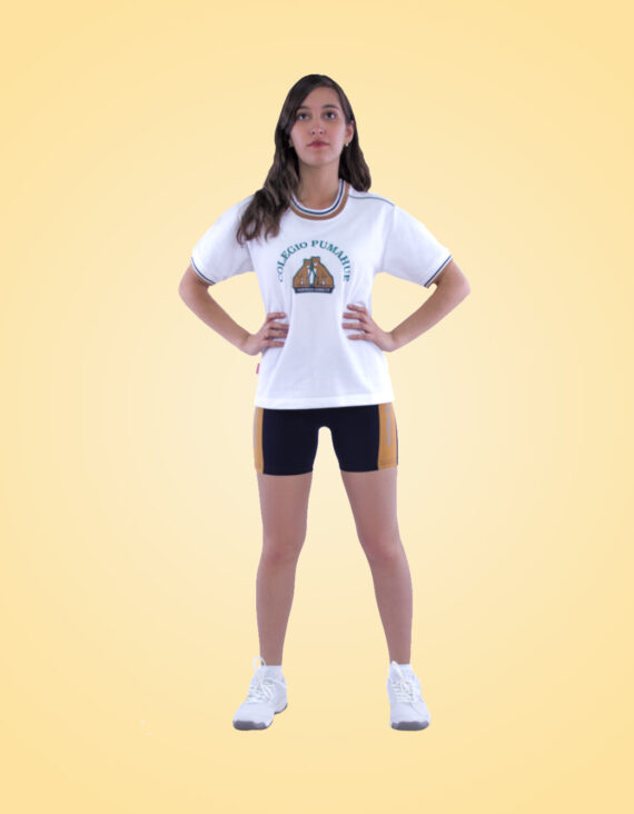 Polera unisex, de polycotton, manga corta, con cuello polo y botamangas tejidas. Uso diario de Jardín Infantil a 2° básico y sólo para Ed. Física de 3° básico a IV medio.